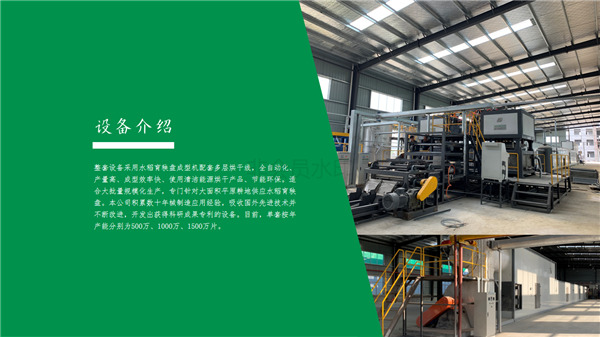整套設備采用水稻育秧盤成型機配套多層烘干線,全自動化、產量高、成型效率快、使用清潔能源烘干產品、節(jié)能環(huán)保。適合大批量規(guī)?;a,專門針對大面積平原耕地供應水稻育秧盤。本公司積累數(shù)十年械制造應用經驗,吸收國外先進技術并不斷改進,目前,單臺按年產量分別為500萬及1000萬片。
