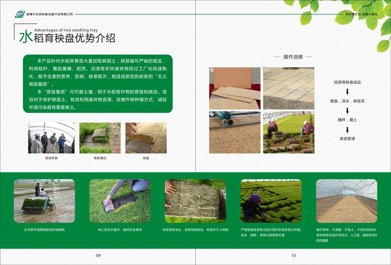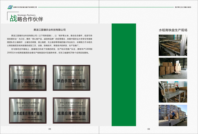 我司2012年應(yīng)黑龍江某企業(yè)誠邀,開發(fā)出秸稈生物質(zhì)水稻環(huán)保育秧盤生產(chǎn)機(jī)器,經(jīng)過公司全員的努力,于2014年成功的攻克了生物質(zhì)環(huán)保育秧盆批量生產(chǎn)的機(jī)器及工藝難題,目前已經(jīng)在黑龍江地區(qū)持續(xù)銷售多條大小生物質(zhì)育秧盤生產(chǎn)線。在2018年,與中國農(nóng)業(yè)大學(xué)農(nóng)學(xué)院及黑龍江國壤農(nóng)業(yè)科技有限公司達(dá)成戰(zhàn)略合作關(guān)系,就水稻育秧盤項(xiàng)目進(jìn)行更深一步的合作與研發(fā)。