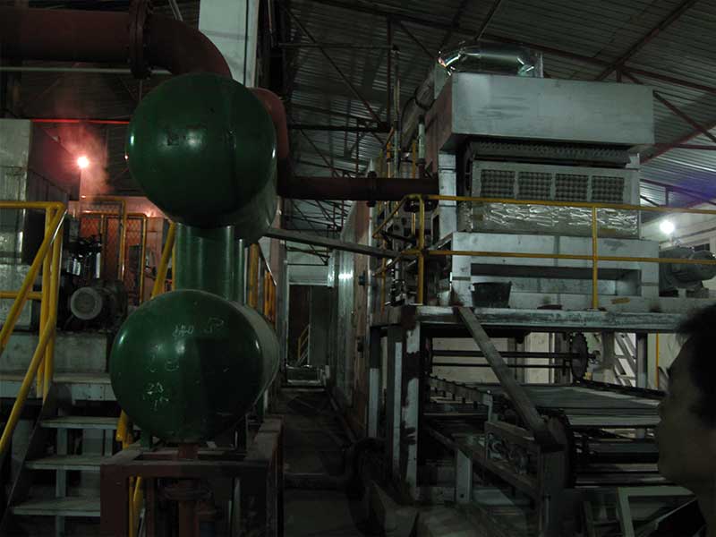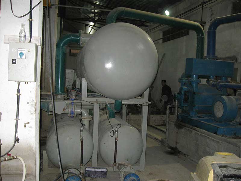 在真空的作用下主機(jī)模具從漿盆內(nèi)吸漿和脫水的過(guò)程中,汽水混合在一起通過(guò)主機(jī)的真空管道被輸送至負(fù)壓罐內(nèi),進(jìn)入罐體后的水在重力的作用下往下沉降至罐底部,空氣則在罐體的上部隨著真空管道進(jìn)入真空泵后排出,罐體下部的水被排液泵(自吸泵)輸送到回收水池內(nèi)再循環(huán)利用制漿和調(diào)漿。這樣的好處是:1水被分離出去后不會(huì)進(jìn)入真空泵內(nèi),能夠保證真空泵和電動(dòng)機(jī)平穩(wěn)的環(huán)境下運(yùn)行,從而保證設(shè)備的使用壽命。2生產(chǎn)線能夠得到較為穩(wěn)定的真空度和真空儲(chǔ)備。3回收的水可以被整條生產(chǎn)線循環(huán)再利用。