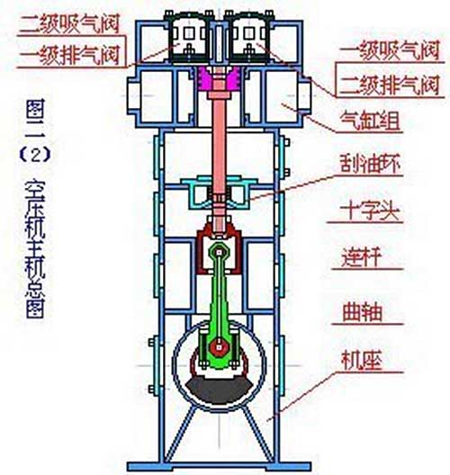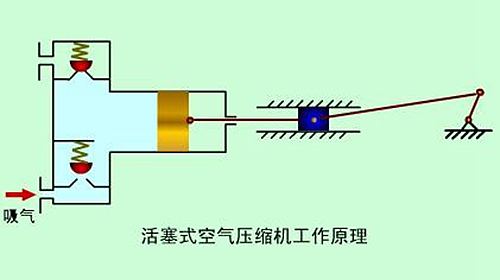 活塞式空氣壓縮機(jī)的工作原理:活塞式空壓機(jī)在氣缸內(nèi)作往復(fù)運(yùn)動(dòng)的活塞向右移動(dòng)時(shí),氣缸內(nèi)活塞左腔的壓力低于大氣壓力,吸氣閥開啟,外界空氣吸入缸內(nèi),這個(gè)過程稱為壓縮過程。當(dāng)缸內(nèi)壓力高于輸出空氣管道內(nèi)壓力后,排氣閥打開?;钊耐鶑?fù)運(yùn)動(dòng)是由電動(dòng)機(jī)帶動(dòng)的曲柄滑塊機(jī)構(gòu)形成的。曲柄的旋運(yùn)動(dòng)轉(zhuǎn)換為滑動(dòng)--活塞的往復(fù)運(yùn)動(dòng)。這種結(jié)構(gòu)的壓縮機(jī)在排氣過程結(jié)束時(shí)總有剩余容積存在。在下一次吸氣時(shí),剩余容積內(nèi)的壓縮空氣會(huì)膨脹,從而減少了吸入的空氣量,降低了效率,增加了壓縮功。